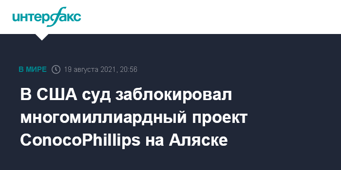 Москва. 19 августа. INTERFAX.RU - Судья суда округа Аляска Шэрон Глисон заблокировала Willow - многомиллиардный нефтяной проект ConocoPhillips на Аляске, посчитав, что власти страны, одобрившие его ранее, недооценили потенциальные негативные последствия добычи нефти для климата.