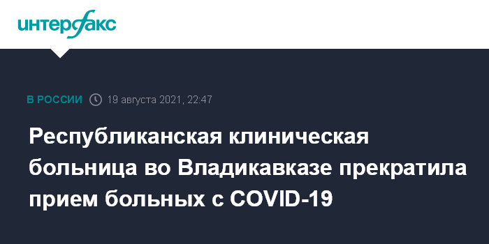 Москва. 19 августа. INTERFAX.RU - Прием пациентов с коронавирусной инфекцией начали в Республиканской клинической больнице Северной Осетии; при этом Республиканская клиническая больница скорой медицинской помощи (РКБСМП), где 9 августа погибли пациенты, прекращает прием больных с COVID-19, сообщает пресс-служба Минздрава республики.