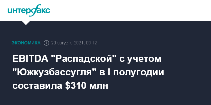 Москва. 20 августа. INTERFAX.RU - EBITDA ПАО "Распадская" в I полугодии составила $310 млн против $124 млн годом ранее, сообщила компания.