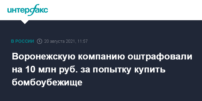 Воронежскую компанию оштрафовали на 10 млн руб. за попытку купить бомбоубежище
