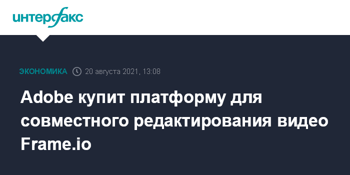 Москва. 20 августа. INTERFAX.RU - Американская Adobe Inc., крупнейший в мире разработчик программного обеспечения для обработки изображений, покупает облачную платформу для совместного редактирования видео Frame.io за $1,28 млрд.