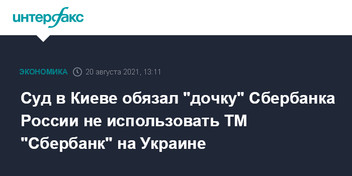 Как сообщалось, 10 августа 2020 года Северный апелляционный хозяйственный суд удовлетворил апелляцию государственного Ощадбанка (Киев) и отклонил иск Сбербанка России об отмене регистрации торговой марки "Сбербанк", права интеллектуальной собственности на которую на территории Украины принадлежат Ощадбанку. Представители Сбербанка России подали иск относительно того, что регистрация Ощадбанком торговой марки "Сбербанк" на территории Украины нарушила их права.