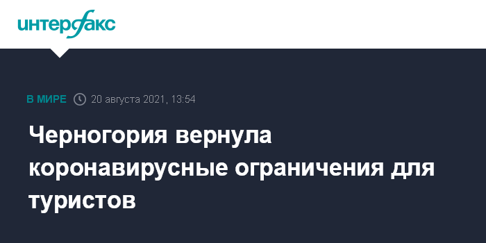Москва. 20 августа. INTERFAX.RU - Черногория ужесточила правила въезда в страну, теперь прибывающим необходимо иметь либо сертификат вакцинации от коронавируса, либо ПЦР-тест или экспресс-тест на антиген, либо справку о перенесенном заболевании.