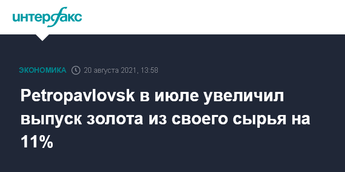По итогам всего 2021 года Petropavlovsk планирует произвести 370-390 тысяч унций золота из собственного сырья - на уровне прошлого года, плюс 60-80 тысяч унций из стороннего (его министерство природных ресурсов Амурской области не учитывает).