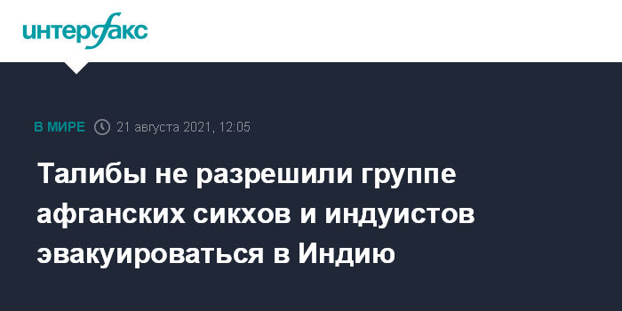 "Талибы остановили группу из 72 афганских сикхов и индуистов при посадке на самолет ВВС Индии. Транспортный самолет С-130 вылетел из Кабула с 85 гражданами Индии. На пути в Дели он сделал посадку в Душанбе для дозаправки", - пишет газета.