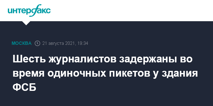 Москва. 21 августа. INTERFAX.RU - Полиция задержала шестерых журналистов во время одиночных пикетов на Лубянке против признания СМИ иностранными агентами.