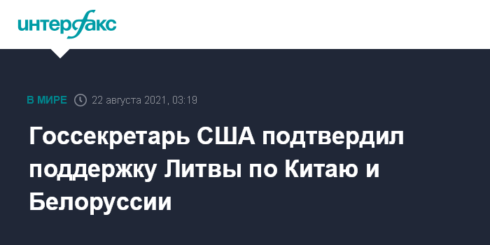 "Госсекретарь Блинкен подчеркнул нерушимую солидарность с нашим союзником по НАТО и партнером из состава ЕС Литвой, столкнувшейся с давлением со стороны КНР. Госсекретарь Блинкен и министр Ландсбергис также обсудили вопросы жестоких репрессий режима Лукашенко (президент Белоруссии Александр Лукашенко - ИФ) в отношении гражданского общества в Белоруссии", - говорится в сообщении.