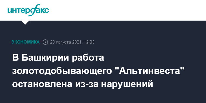 В Башкирии работа золотодобывающего "Альтинвеста" остановлена из-за нарушений