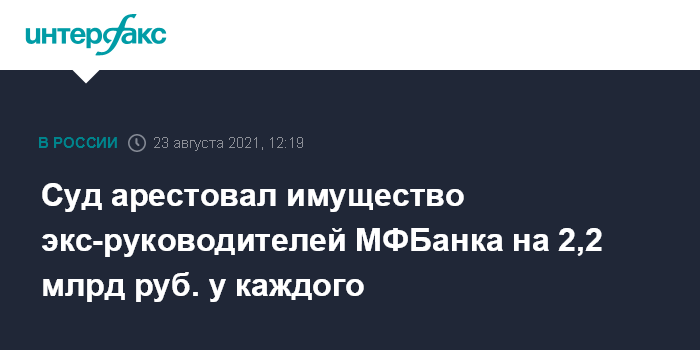 Суд арестовал имущество экс-руководителей МФБанка на 2,2 млрд руб. у каждого