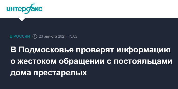 Москва. 23 августа. INTERFAX.RU - Сотрудники правоохранительных органов инициировали проверку информации о жестоком обращении с пожилыми гражданами в специализированном пансионате Московской области.