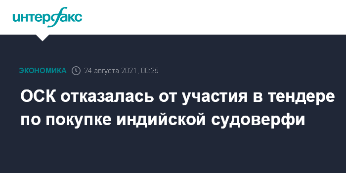 ОСК отказалась от участия в тендере по покупке индийской судоверфи