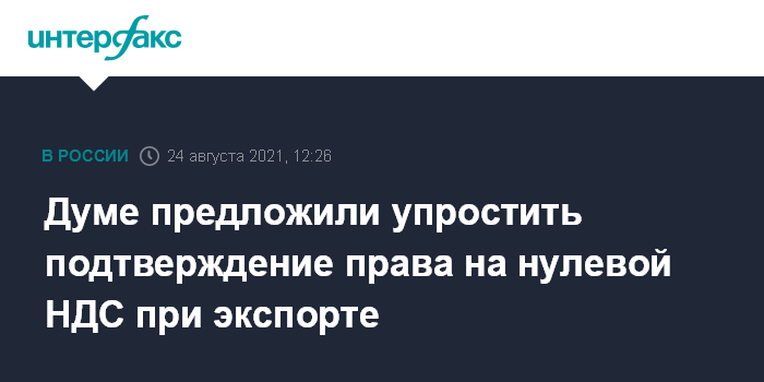 Думе предложили упростить подтверждение права на нулевой НДС при экспорте