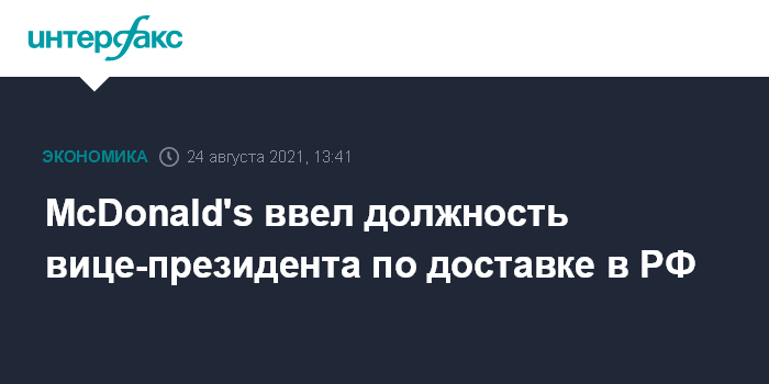 Москва. 24 августа. INTERFAX.RU - McDonald's в России ввел новую должность - вице-президента по доставке. На этот пост назначен Радомир Глащак, который сфокусируется на развитии и операционном управлении направления доставки. Также одной из ключевых задач на новой должности станет определение стратегии для дальнейшего активного развития доставки, говорится в сообщении компании.