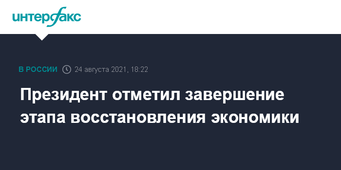 Москва. 24 августа. INTERFAX.RU - Этап восстановления российской экономики практически завершен, принципиально важно сразу после него запустить масштабные проекты развития, чтобы не было паузы в росте, заявил на съезде "Единой России" президент Владимир Путин.