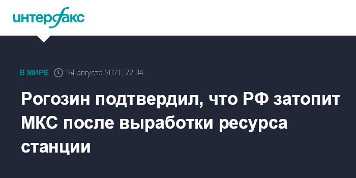 Москва. 24 августа. INTERFAX.RU - Россия в случае выхода из проекта МКС не откажется от своих обязательств по организации затопления станции, когда ее ресурс будет выработан, сообщил глава "Роскосмоса" Дмитрий Рогозин.