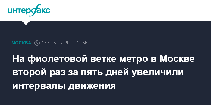 На фиолетовой ветке метро в Москве второй раз за пять дней увеличили интервалы движения