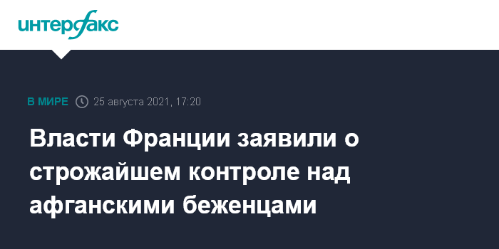 Ранее сообщалось, что глава французского МВД Жеральд Дарманен подписал в минувшую субботу распоряжение об административном контроле и наблюдении за афганцем и четырьмя его возможными сообщниками, эвакуированными 18 августа во Францию из Абу-Даби. Их подозревают в связи с талибами.