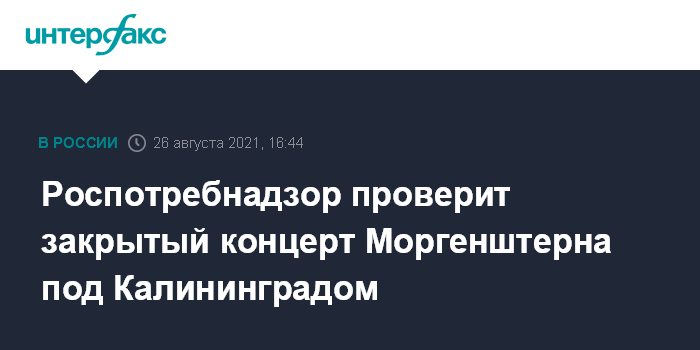 Москва. 26 августа. INTERFAX.RU - КС СЕВЕРО-ЗАПАД - Частный концерт рэпера Моргенштерна (Алишера Валеева) под Калининградом вызвал вопросы регионального управления Роспотребнадзора, сообщили "Интерфаксу" в пресс-службе ведомства.