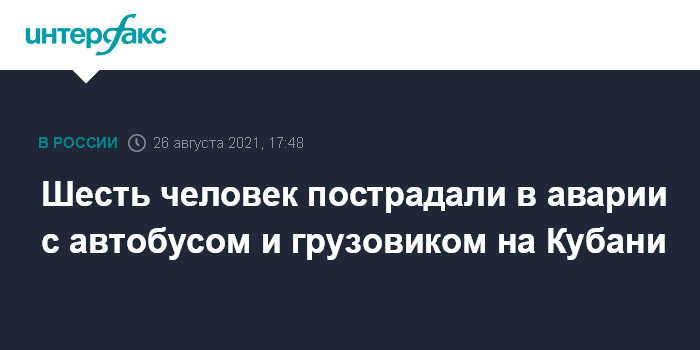 Ранее информированный источник сообщил "Интерфаксу", что несколько человек пострадали в аварии с автобусом и грузовиком вблизи хутора Соленый на Кубани. По данным источника, автобус направлялся из Судака в Курск.