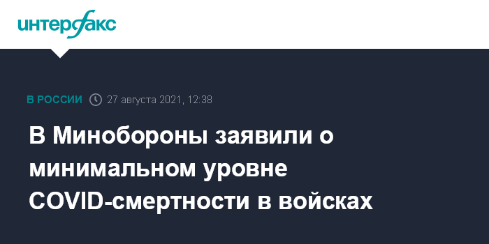 Москва. 27 августа. INTERFAX.RU - В Вооруженных силах России на сегодняшний день сохраняются минимальные показатели заболеваемости и смертности от коронавируса по стране, сообщил начальник Главного военно-медицинского управления Минобороны РФ Дмитрий Тришкин.