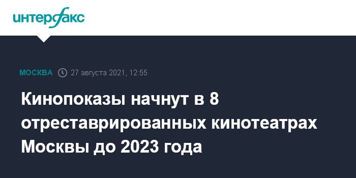 Кинопоказы начнут в 8 отреставрированных кинотеатрах Москвы до 2023 года