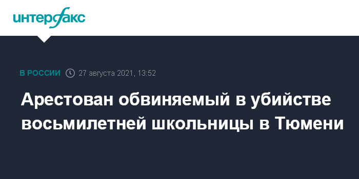 Москва. 27 августа. INTERFAX.RU - Ленинский суд в Тюмени в пятницу арестовал до 25 октября обвиняемого в убийстве восьмилетней школьницы, сообщили "Интерфаксу" в областном суде.