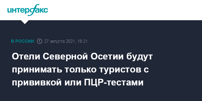 Как сообщалось, 3 августа глава Роспотребнадзора Северной Осетии Алан Тибилов на заседании оперативного штаба обратился к санаторно-курортным организациям, предпринимателям, турбазам с предложением предоставлять гостиничные услуги туристам по сертификатам о вакцинации или отрицательным ПЦР-тестам.