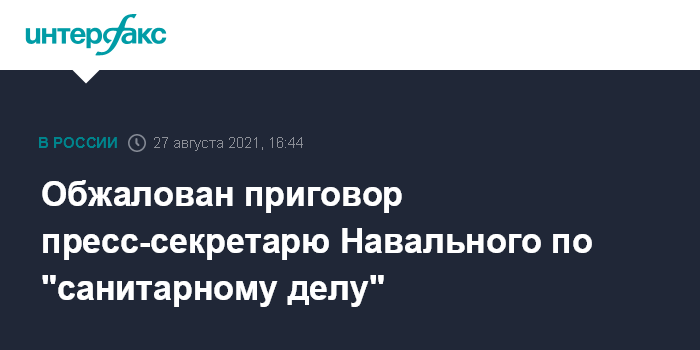 Обжалован приговор пресс-секретарю Навального по "санитарному делу"