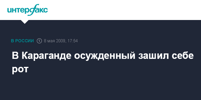 Караганда. 8 мая. INTERFAX.Ru - В Караганде (адмцентр Карагандинской области Казахстана) в следственном изоляторе АК 159/1 приговоренный к длительному сроку лишения свободы мужчина объявил голодовку и зашил себе рот.