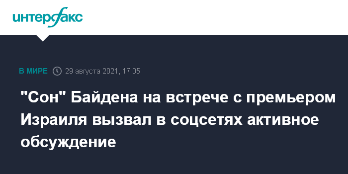 Москва. 29 августа. INTERFAX.RU - Видеозапись, на которой президент США Джо Байден во время встречи с премьером Израиля Нафтали Беннетом выглядит задремавшим, разошлась по соцсетям и уже вызвала негодование у ряда представителей американского конгресса, сообщает в воскресенье сингапурское издание International Business Times.