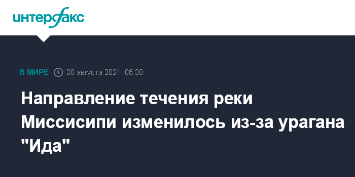 Москва. 30 августа. INTERFAX.RU - Штормовой нагон и сильный ветер, которые вызвал мощный ураган "Ида", изменили направление течения реки Миссисипи возле города Новый Орлеан в американском штате Луизиана, сообщает CNN.