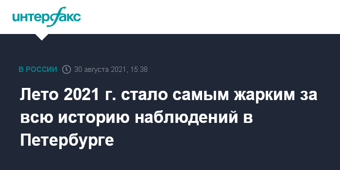 Лето 2021 г. стало самым жарким за всю историю наблюдений в Петербурге