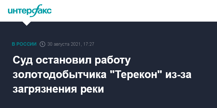 Москва. 30 августа. INTERFAX.RU - В Амурской области Селемджинский районный суд приостановил работу золотодобывающей компании "Терекон" на реке Курумкан из-за выявленного загрязнения воды в реке, сообщило региональное Минпироды.