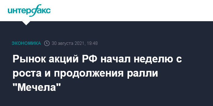Москва. 30 августа. INTERFAX.RU - Рынок акций РФ в понедельник продолжил подъем вслед за мировыми площадками, подогретыми заявлениями главы Федрезерва США о дальнейшей монетарной политике, а также на фоне подорожавшей нефти (Brent достигла $73 за баррель); индекс МосБиржи поднялся к 3930 пунктам, при этом вновь раллировали не входящие в расчет индекса акции "Мечела" на высоких оборотах.