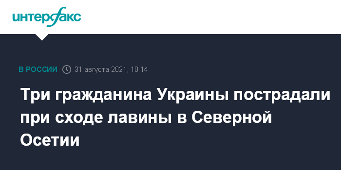 Москва. 31 августа. INTERFAX.RU - Украинские альпинисты попали под лавину на горе Казбек, трое пострадали, сообщает пресс-служба ГУ МЧС Северной Осетии