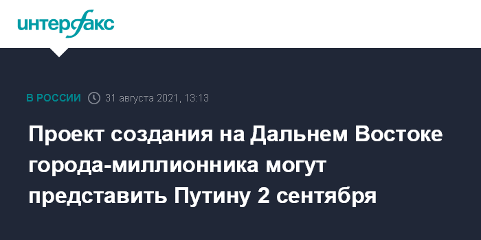 Так он ответил на вопрос, будет ли президент во время поездки на Дальний Восток в ближайшие дни обсуждать планы правительства по созданию в регионе первого города-миллионника на базе Владивостока.