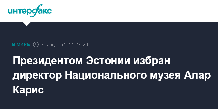 Москва. 31 августа. INTERFAX.RU - Парламент Эстонии на внеочередной сессии во вторник на закрытом голосованием избрал президентом республики директора Национального музея Эстонии Алара Кариса (Alar Karis).