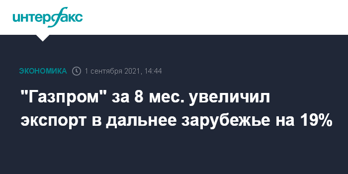 "Газпром" за 8 мес. увеличил экспорт в дальнее зарубежье на 19%