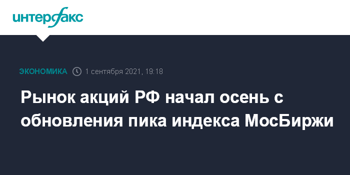 Рынок акций РФ начал осень с обновления пика индекса МосБиржи