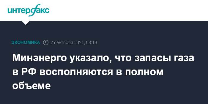 Минэнерго указало, что запасы газа в РФ восполняются в полном объеме
