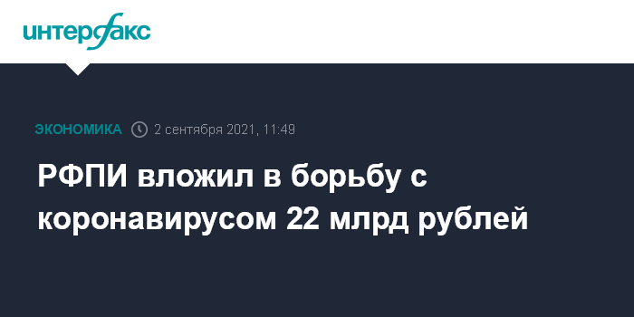 РФПИ вложил в борьбу с коронавирусом 22 млрд рублей