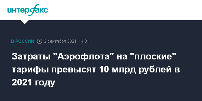 Затраты "Аэрофлота" на "плоские" тарифы превысят 10 млрд рублей в 2021 году