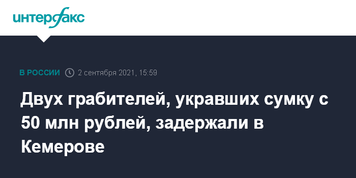 Двух грабителей, укравших сумку с 50 млн рублей, задержали в Кемерове