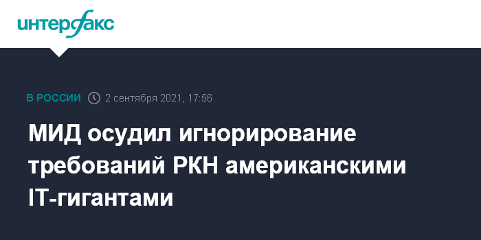 МИД осудил игнорирование требований РКН американскими IT-гигантами