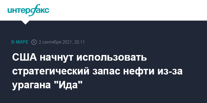 Москва. 2 сентября. INTERFAX.RU - Президент США Джо Байден в четверг сообщил, что поручил министру энергетики Дженнифер Грэнхолм использовать стратегический запас нефти для борьбы с вызванным ураганом "Ида" повышением цен на топливо в стране.