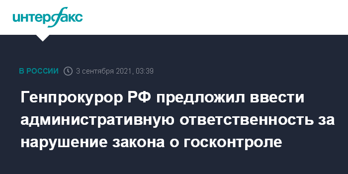Москва. 3 сентября. INTERFAX.RU - Генеральный прокурор РФ Игорь Краснов внёс предложение президенту России о введении административной ответственности для должностных лиц, нарушающих новый закон о госконтроле.