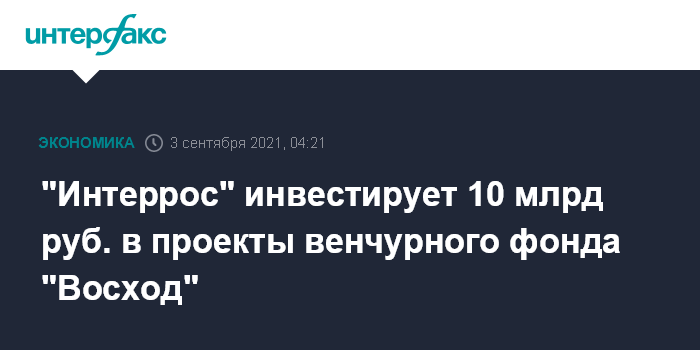 "Интеррос" инвестирует 10 млрд руб. в проекты венчурного фонда "Восход"