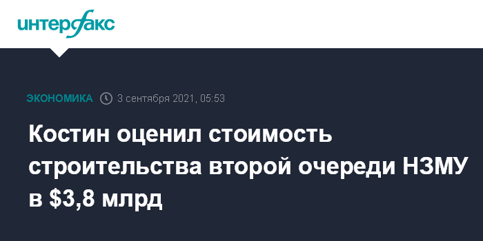 "Только что я подписал вместе со своими коллегами крупное соглашение - это вторая очередь строительства НЗМУ. Первая очередь, которую мы отфинансировали пополам с ВЭБом, была стоимостью $2,5 млрд, вторая очередь еще больше - $3,8 млрд", - сказал глава ВТБ Андрей Костин в интервью "России 24" на полях Восточного экономического форума.