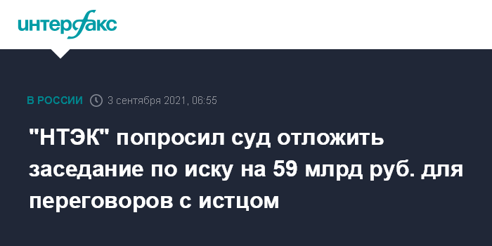 "НТЭК" попросил суд отложить заседание по иску на 59 млрд руб. для переговоров с истцом