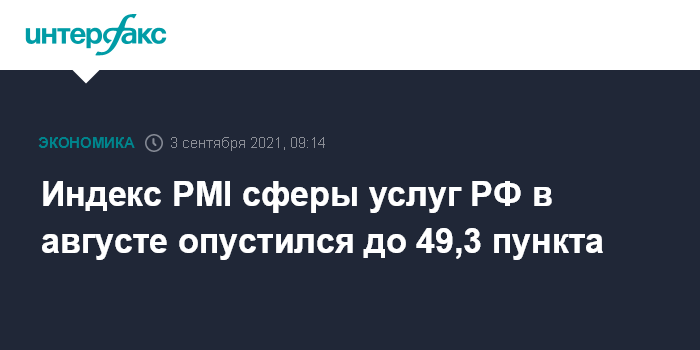 Москва. 3 сентября. INTERFAX.RU - Индекс PMI сферы услуг России в августе 2021 года составил 49,3 пункта, заметно опустившись с июльского значения 53,5 пункта, свидетельствуют данные исследования IHS Markit.